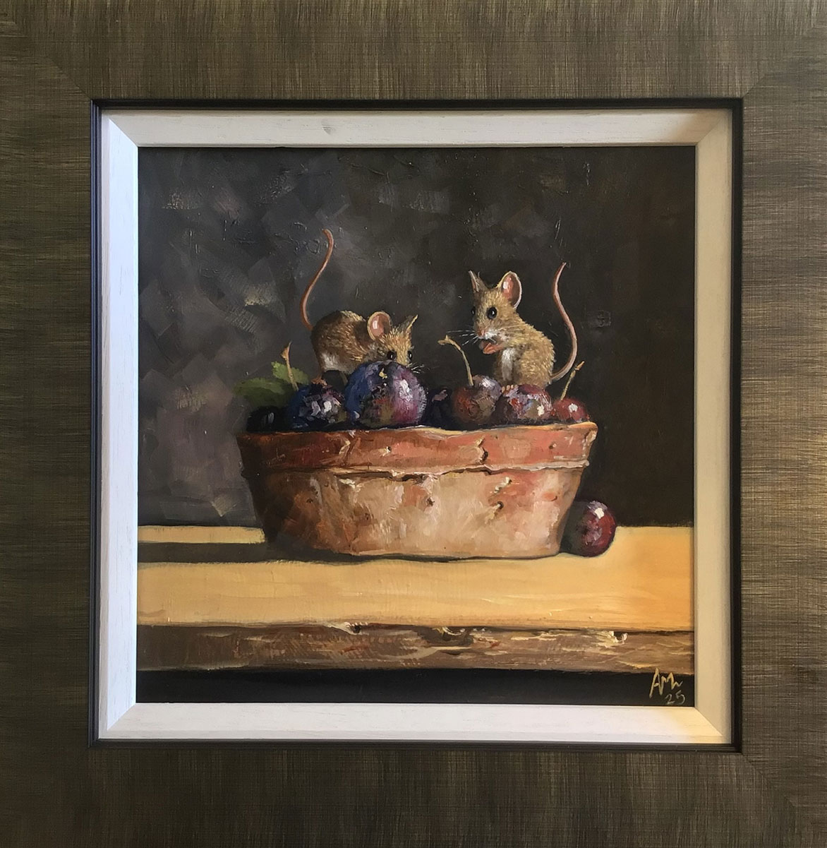 Rustic Bowl with Mice and Plums